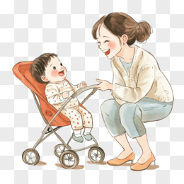 手绘可爱温馨母亲节沙发陪伴家庭系列素材