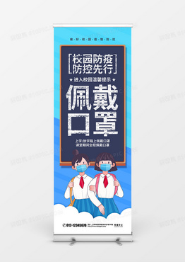 蓝色简约校园防疫温馨提示佩戴口罩宣传展架设计