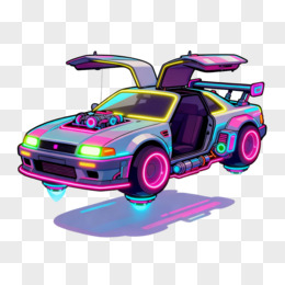 卡通手绘赛博朋克风跑车免抠元素