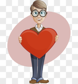 卡通手绘戴眼镜捧心男人