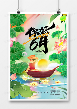 夏天插画荷花荷叶小暑大暑夏至夏季夏天海报设计