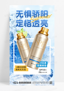 防晒产品防晒喷雾蓝色黄色立体风海报材