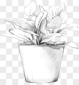 扁平风格高清素描盆栽