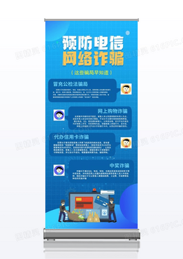 蓝色预防电信网络诈骗骗局知识点宣传展架