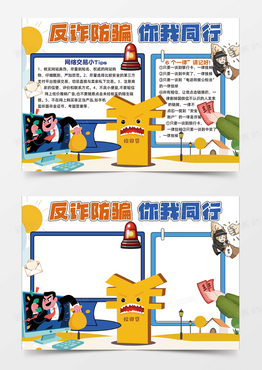 橙色简约反诈防骗你我同行卡通手绘可爱手抄报