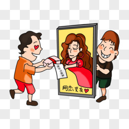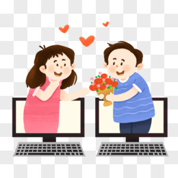 手绘男女线上网恋免抠元素
