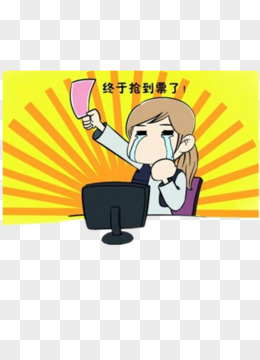 手绘卡通插画风女孩抢到回家的票开心奔跑免抠元素