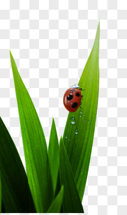 手绘卡通七星瓢虫和绿色植物免抠元素