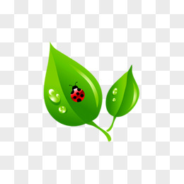 绿色卡通树叶露珠瓢虫