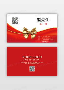 简约红色喜庆飘带蝴蝶结婚庆名片