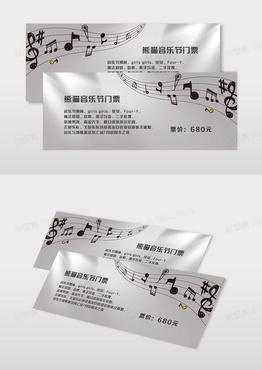 简约灰色光影黑色飘动音符音乐节门票
