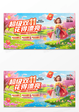 双十一展板蓝色3D风格超级双11双11宣传展板双11展板