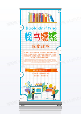 简约卡通时尚图书漂流卡通风易拉宝展架设计