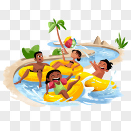 卡通小朋友们在水上乐园一群人玩耍开心元素