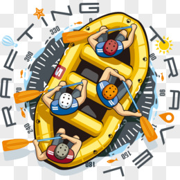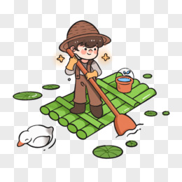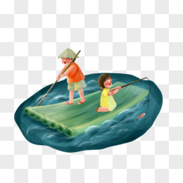 手绘卡通小朋友乘坐竹筏钓鱼素材