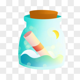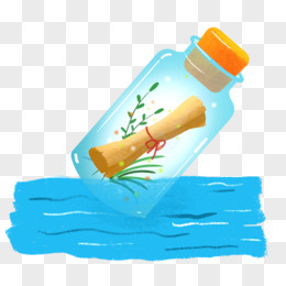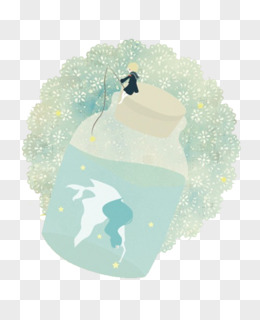 卡通手绘坐在漂流瓶中的孩子免抠素材