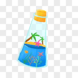 卡通手绘漂流瓶玻璃瓶素材