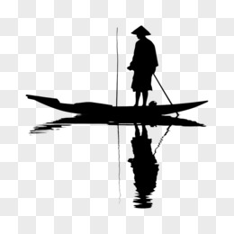 穿蓑衣戴斗笠的人划竹筏剪影素材