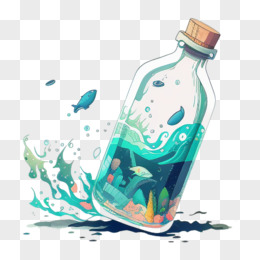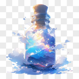 卡通手绘坐在漂流瓶中的孩子免抠素材