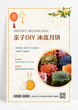 黄色简约亲子diy冰皮月饼月饼宣传海报设计