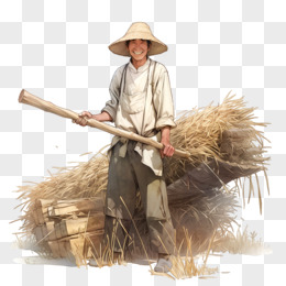 手绘卡通古代人物拿起斧头砍树免抠素材