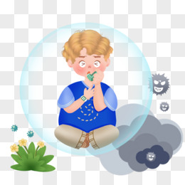 手绘男孩过敏性哮喘花粉粉尘尘螨过敏素材