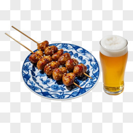 烤鸡心啤酒夏日美食产品实物免抠元素