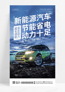 蓝色实拍简约新能源汽车大气力量皮卡汽车ui通用海报