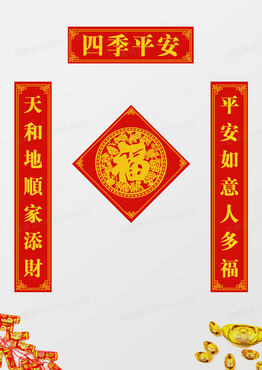 过年对联兔年新年春节2023兔年中国风剪纸四季平安福字春节对联春联设计模板