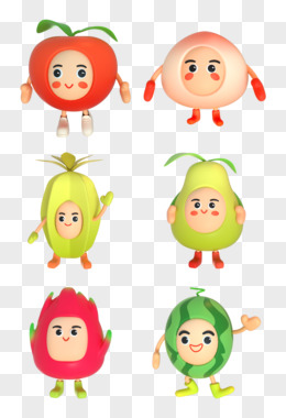 一组c4d可爱卡通水果拟人3d元素