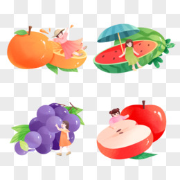 一组插画风水果与人物合集素材