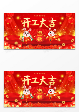 红色开工大吉特惠全场6折活动促销折扣插画海报设计