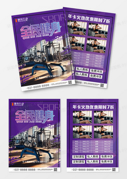 紫色大气健身海报设计健身海报背景健身美女健身房宣传单页