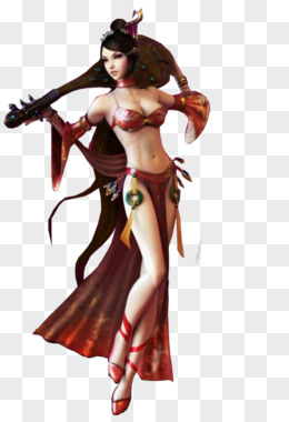 卡通手绘古风弹琵琶的小女孩免抠元素