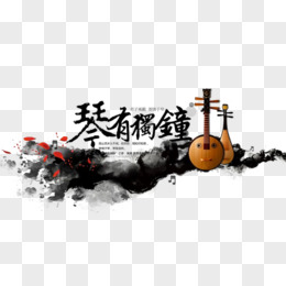 一组手绘国潮风琴棋书画山水组合合集之弹琴元素