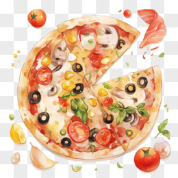 水彩快餐食物披萨免抠元素