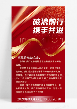 活动促销破浪前行携手共进开业庆典活动手机宣传海报