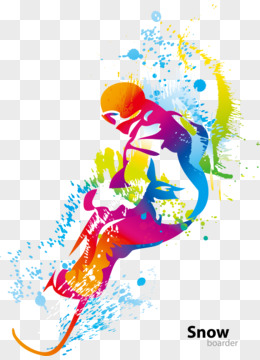 彩色泼墨玩滑雪人物