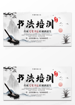 中国风水墨毛笔艺术字书法班毛笔字教学展板