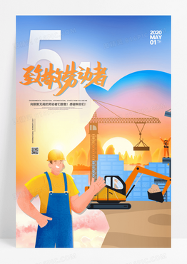 小清新卡通劳动最光荣五一劳动节宣传海报