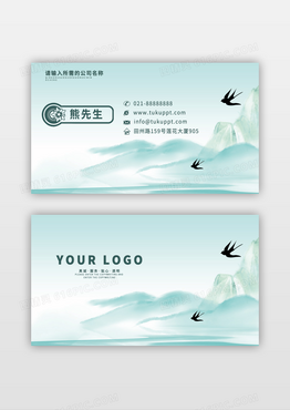 绿色水墨燕子中国风茶叶创意名片
