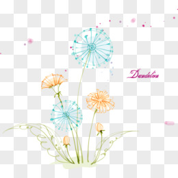 手绘卡通小精灵飞在蒲公英花丛中免抠素材