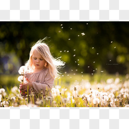 蒲公英花海里的小女孩