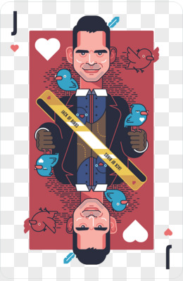 手绘卡通马戏团红心扑克牌