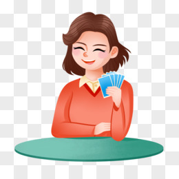 手绘卡通朋友一起打扑克免抠元素