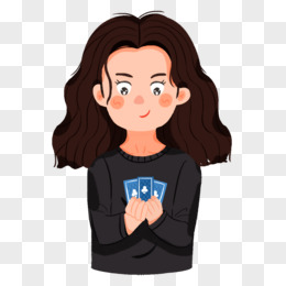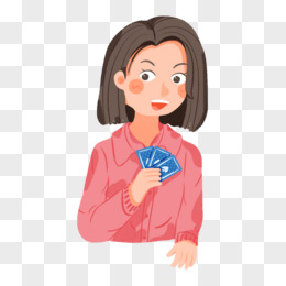 手绘卡通手持扑克牌元素