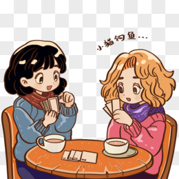 卡通手绘朋友打牌免抠元素
