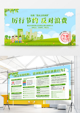 绿色简约时尚大气厉行节约反对浪费光盘行动宣传栏展板