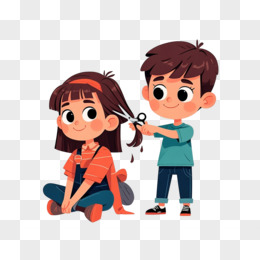 儿插剪头发理发二月二剪头发的人插画免抠元素