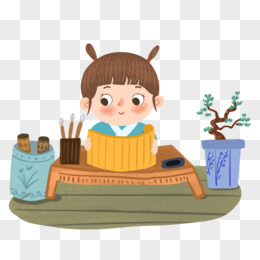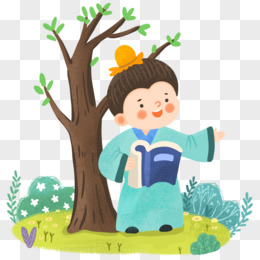 手绘可爱卡通Q版背着书箱的小小书生元素